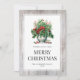 Rustic watercolor Merry Christmas card featuring holly branches with berries inside a vase and Christmas candy. Easily personalise this rustic holiday card with your family name and the year.