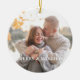 Rustic Holly Pine Newlyweds 2-sided Custom Photo Ceramic Ornament
