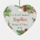 This newlyweds first Christmas ornament has plenty of chic rustic flair. The word " Together" is designed in modern script typography and overlaid on the photo. The back side is with a wood base and Christmas plants - holly and pine spotted on the edge of the ornament with a joyful atmosphere of the holiday season. Easily personalise it with your memorable photo in place of the template photo, as well as the name and year on the back side. What a fantastic way to celebrate your first Christmas together!