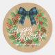 Rustic Holly Wreath Blue Black Chequered Bow Classic Round Sticker