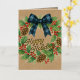 Rustic Holly Wreath Blue Black Chequered Bow Foil Holiday Card
