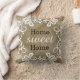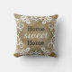 A rustic throw pillow with a faux burlap print.The quote "Home Sweet Home" adds a trendy and chic look to the country style accent pillow for your home.A decorative white floral swirl pattern frames the typography.