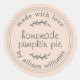 Rustic and modern homemade baked goods pumpkin pie sticker with the text made with love, homemade pumpkin pie and your name in modern script on a peach dust background. Simply add your (business) name and the product name to the label. Exclusively designed for you by Happy Dolphin Studio. If you need any help or matching products, please contact us at happydolphinstudio@outlook.com.