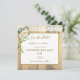 A romantic rustic wedding design features honeyed pine background with watercolor roses and lace accent. The pine background is repeated on the reverse.