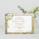 A romantic rustic wedding invitation design features honeyed pine background with watercolor roses and lace accent. This version has bride and groom names on same level and is sprinkled with faux gold speckles at edges.