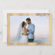 A romantic rustic wedding invitation design features honeyed pine background with watercolor roses and lace accent. The pine background is repeated on the reverse with a featured custom photo. Replace sample photo with your own horizontal bridal or romantic portrait.