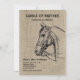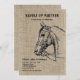 A rustic invitation featuring a horse profile against a burlap background. (Pix). The card is easy to customise with your wording, font, font colour, paper shape and choice of paper type. Not exactly what you're looking for? All our products can be custom designed to meet your needs at no extra charge. Simply contact us at heartfelthelper@gmail.com. Coordinating products available: Just ask us!"