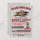 Awesome Horse Racing Derby party invitation done in an old poster style. Features an old illustration of a race horses and jockeys, bow tie and a Victorian lady in a fancy big hat with fun typography against faux barn wood background.
