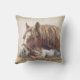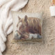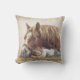 Decorator throw pillow with a rustic, country farm painting of a horse and child sleeping peacefully in a bed of hay.