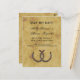 Rustic country look customisable party and celebration invitations and accessories with a horseshoe design on a distressed tea stained look background.