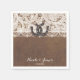 Rustic Horseshoes & Lace Country Wedding Napkins. Customise with any text. Matching items available.