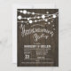 Rustic Housewarming Invitation with wood pattern and string fairy lights. Perfect for a rustic style party.