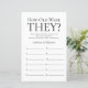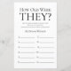 This lovely How Old Were They? bridal shower game sheet is simple and charming - perfect for any shower celebrating 2 brides. This fun and easy game is sure to bring lots of laughter to any bridal shower! Have family and friends send you pictures of the brides at different ages and have them printed. Number them and set them near these game sheets. Simply give a sheet to each guest (don't forget the pens) and let the competition begin! You'll be amazed at how many people really know the ages of the brides. In seconds you can see how your game sheet will look. Simply select Personalise this Template and type in the brides' names.