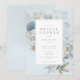 Introducing our rustic bridal shower invitation —where timeless elegance meets the softness of a blue enchanting palette. Picture this: a distressed soft blue background that sets the stage for an invitation like no other. A white text box stands out, surrounded by a breathtaking bouquet of dusty blue and creamy white hydrangeas with soft sage green foliage. This invitation is more than just an announcement; it's a work of art that reflects the romance and charm of your special day. Created by Simply Farmhouse Press.