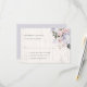 These beautiful and elegant wedding rsvp cards feature a bouquet of pretty watercolor flowers on a rustic white wood look background. There are purple hydrangeas, blush pink peonies and roses, and dark grey foliage and leaves. The back of the invitation is a soft, lavender purple colour.