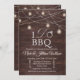 This rustic co-ed I Do BBQ invitation is perfect for a backyard BBQ. It features string lights and wood. It is perfect for a casual couples shower.
