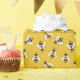 A pattern of yellow and black striped, illustrated, rustic bees swarm across this yellow wrapping paper. Use the customisation further link to change the yellow background colour to one of your choice.