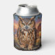 Rustic Impasto Great Horned Owl Can Cooler