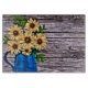 This is a picture of abstract yellow flowers in a blue water pitcher, Rustic impressionism blue vase summer daisy home accessories. Rustic western country daisy fashion accessories . Rustic daisy wedding favours.