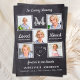 Rustic Chalkboard Unique Funeral Thank You Cards. These sympathy funeral cards feature a unique photo collage for 6 of your favourite photos, monogram initial and name, a heartfelt Quote "In Loving Memory....Loved Beyond Words, Missed Beyond Measure...Forever in our Hearts" on chalkboard in a grey and white design. These memorial sympathy cards are perfect for funeral thank you cards, or celebration of life thank you cards.