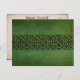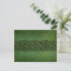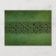 Grungy antique deep green gradient textured background with centre band of ancient engraved Celtic knot ornament design.