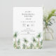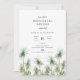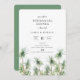 Rustic watercolor palm trees, wedding rehearsal dinner invitation. Card features modern typography design style template and coordinating sage green colour backing.