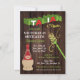 Rustic wood Italian rehearsal dinner invitations. Hand drawn elements of Italian wine in basket, fork with spaghetti and fun fonts. Hand drawn illustration by McBooboos.