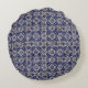 Rustic Italian Tiles Azulejo Blue White Geometric Round Cushion