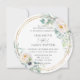 Rustic Ivory Floral Eucalyptus Wedding Gold Circle Invitation