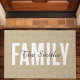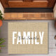 Rustic jute tan faux burlap "Family" custom monogrammed door mat. Add a touch of country cute to your entry way. Makes a great family keepsake. Click the customise it button to customise the typography with your own family name. Note: the burlap in this designs is a printed faux texture.