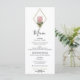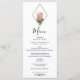 This design features a pink rustic King Protea flower. The King Protea flower with its green leaves is elegantly framed with a gold diamond colour frame. The King Protea flower and its greenery create a rustic floral country garden bush feel. Rustic wedding menu card design with elegant modern elements. Matching wedding invitations and other stationery items are also available.