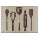 Cutting board with rustic utensils. You can put your name on the rolling pin, and change the background colour. Matches other items in the Rustic Kitchen collection