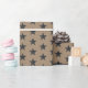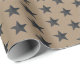 A rustic kraft wrapping paper for the Christmas holiday featuring black stars in a repeat pattern on a warm kraft paper.