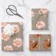 Rustic Kraft Blush Peach And Cognac Flowers Wrapping Paper Sheet