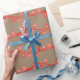 Rustic Kraft Bright Red Christmas String Lights Wrapping Paper