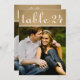 To customise: type in the table number, click "change" by the default photo to upload your own photo, and add that individual table number card to your shopping cart. Repeat for all of the table numbers that you need. White script text and dotted divider design on a background that has a rustic kraft paper textured appearance.
