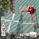 A rustic kraft coloured holiday wrapping paper featuring dusty teal green wide stripes on the diagonal.