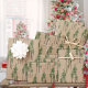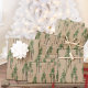 A woodland forest Christmas holiday wrapping paper featuring illustrated green Eastern pine trees in a forest pattern on a brown Kraft colour wrapping paper.