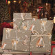 A Christmas winter holiday wrapping paper featuring a kraft colour background with elegantly watercolor-painted animals like the red fox, the doe deer and the hare rabbit.