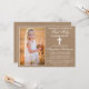 Rustic Kraft First Holy Communion Invitation with Cross and Photo.
