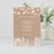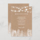 Add your wedding details to your reception with this rustic brown Kraft Fall and winter pine trees forest wedding string lights with white pine trees showing a wonderland of wood land , with elegant and modern typography.