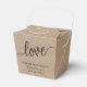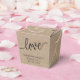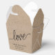 This trendy favour box features a faux kraft background and script lettering with swashes. Use the template form to add your information. The Customise feature can be used to change the font and the text layout. You can also add text to the other side of the favour box.