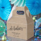This trendy favour box features a faux kraft background and script lettering with swashes. Use the template form to add your information. The Customise feature can be used to change the font and the text layout. You can also add text to the other side of the favour box.