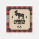 A background of red buffalo plaid contrasts against a kraft paper look panel on this Northwoods themed napkin. The panel holds the text and features a moose between two pine trees. The crossed axe makes a custom logo below. Great addition to a birthday, bachelor party, seasonal event, or a buffalo plaid, or lumberjack themed celebration. Available with matching products.