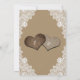 This romantic rustic country wedding invitation featuring two burlap hearts against a kraft paper background adorned with white floral lace and string lights is perfect for inviting your guests to your rustic country/barn wedding party. Kraft paper decorated with string lights, lace and two burlap hearts with monograms at the back.