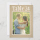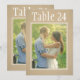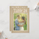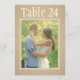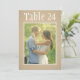 Elegant custom wedding table cards can be personalised with an engagement photo of the bride and groom. Design features white table number text on a rustic kraft brown paper background. To customise: type in the table number, click "change" by the default photo to upload your own photo, and add that individual table number card to your shopping cart. Repeat for all of the table numbers that you need.