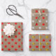 A festive wrapping paper trio sheet set for the Christmas holiday season featuring red, red and gold and red and silver stars on a rustic kraft paper background. Great for any occasion and makes an impressive gift wrap.