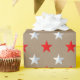 A festive wrapping paper for the Christmas holiday season featuring red and silver stars on a rustic kraft paper background. Great for any occasion and makes an impressive gift wrap.