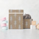 A rustic neutral holiday wrapping paper featuring a kraft colour background with silver woodland pine trees.