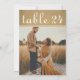 A warm kraft background and flowing calligraphy script pair with your favourite photo on this rustic wedding table number card. The natural, earthy design complements barn, garden, and outdoor reception settings. To customise, type in the table number, click Change by the default photo to upload your own, and add that individual table number card to your shopping cart. Repeat for all of the table numbers that you need.